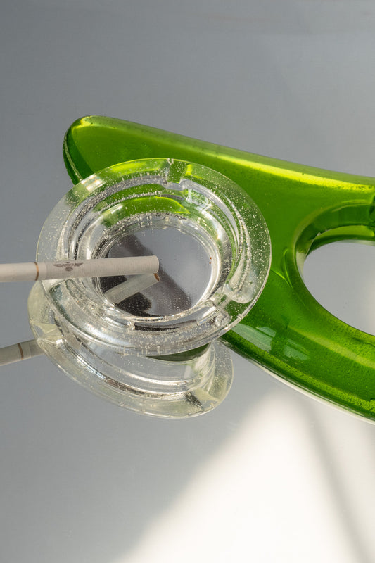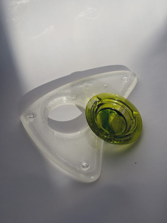 ATOMIC RESIN ASHTRAY | CLEAR WITH GREEN